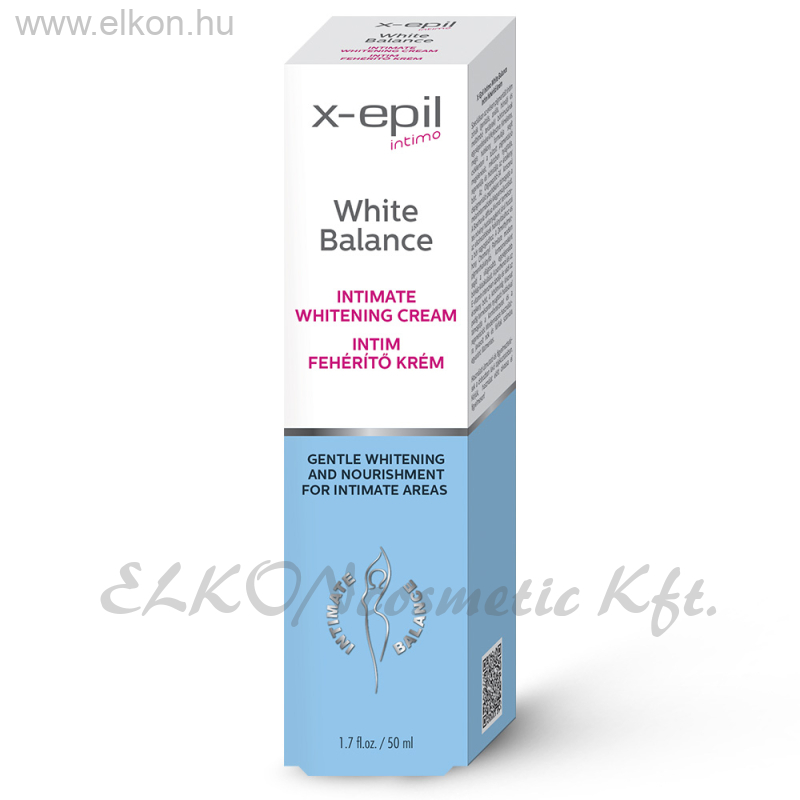 Az X-Epil Intimo White Balance intim fehérítő krémet speciálisan az intim testrészek kifehérítésére fejlesztették ki. Olyan egyedülálló készítmény, amelynek hatóanyagai mind in vitro (laboratóriumi körülmények között), mind in vivo (emberi vizsgálatokban) pigment-halványító hatással rendelkeznek, és biztonságos bőrvilágosító megoldást nyújtanak. Depigmentáló összetevőinek köszönhetően kíméletesen fehéríti és ápolja az erősen pigmentált genitális és anális területeket. A formula úgy lett kialakítva, hogy a halványító hatás mellett megőrizze a bőr természetes egyensúlyát és komfortérzetét.