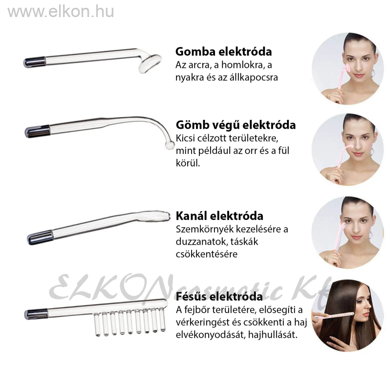 - Fésűs elektróda - a fejbőr revitalizálására, serkenti a hajnövekedést, megelőzi a hajhullást.